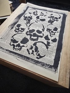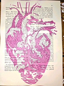 In this piece, the sigil has been hand-painted directly onto a salvaged book page. The acrylic pigment has subtly reacted with the paper, causing the central area to contract and buckle as it dried. This unplanned physical response is embraced rather than corrected, giving the work a slight relief-like, almost sculptural quality. The surface catches light differently across its plane, suggesting depth and dimensionality that rewards close viewing. For this reason, the work lends itself particularly well to box framing, where shadow and air can be allowed to interact with the object, rather than being pressed flat behind glass.